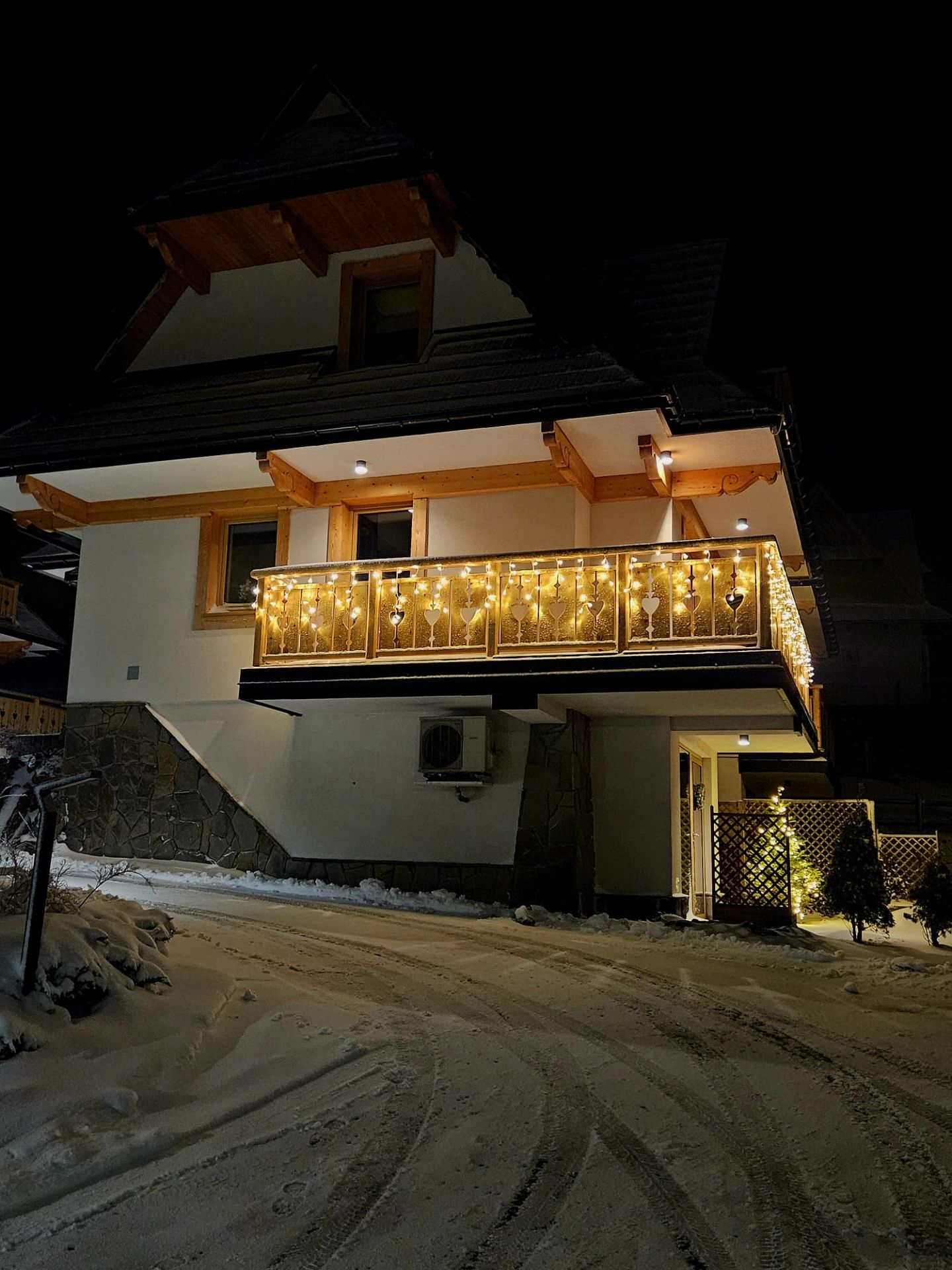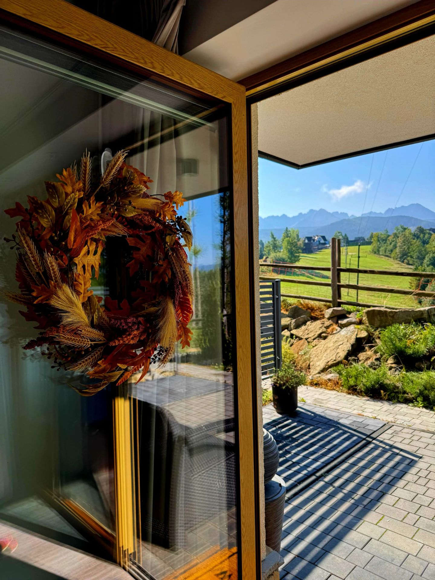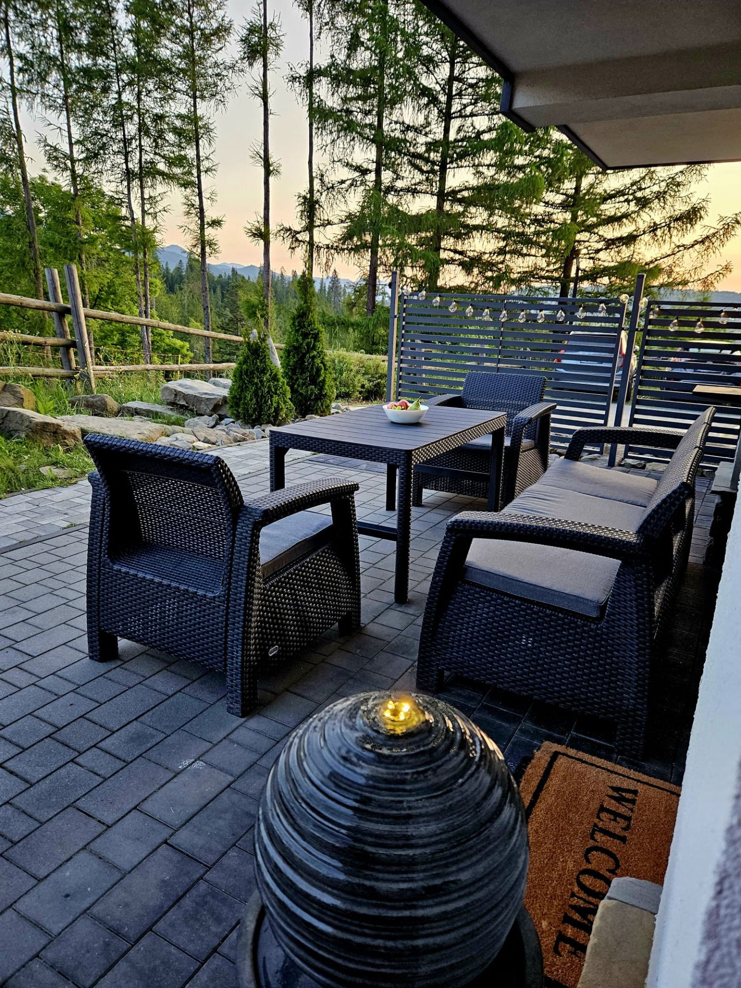 Na parterze znajduje się sypialnia z łóżkiem małżeńskim, oraz sofą rozkładaną, łazienką z prysznicem oraz sauną. Jest też wyjście na taras. Na piętrze jest w pełni wyposażona kuchnia z salonem z sofą rozkładaną, kominkiem elektrycznym oraz wyjściem na taras. Na II piętrze znajduje się sypialnia z łóżkiem małżeńskim oraz balkonem z pięknym widokiem na góry. Jest również łazienka z wanną. Na poddaszu znajdują się 3 materace typu futon przeznaczone do spania dla dzieci.