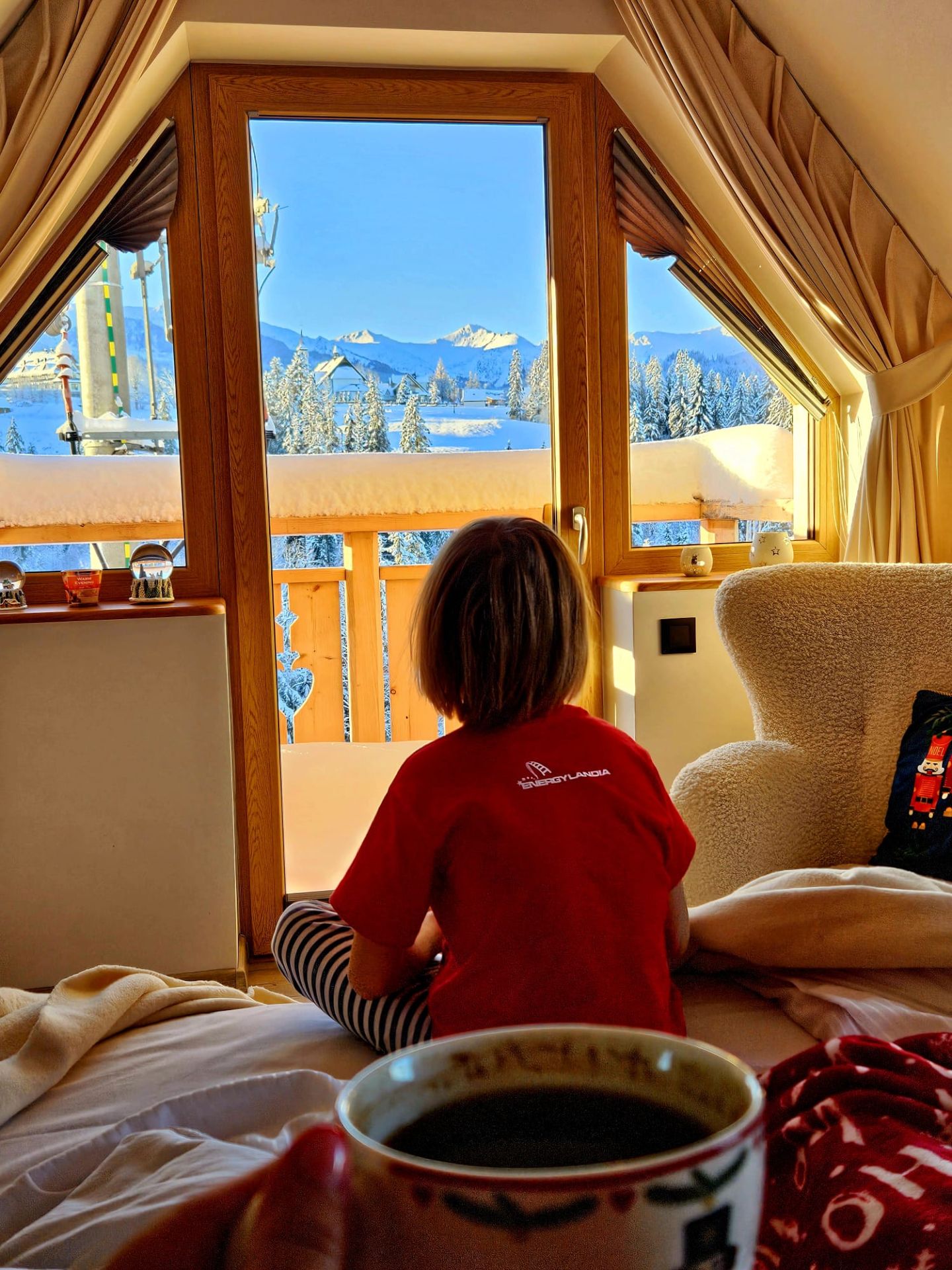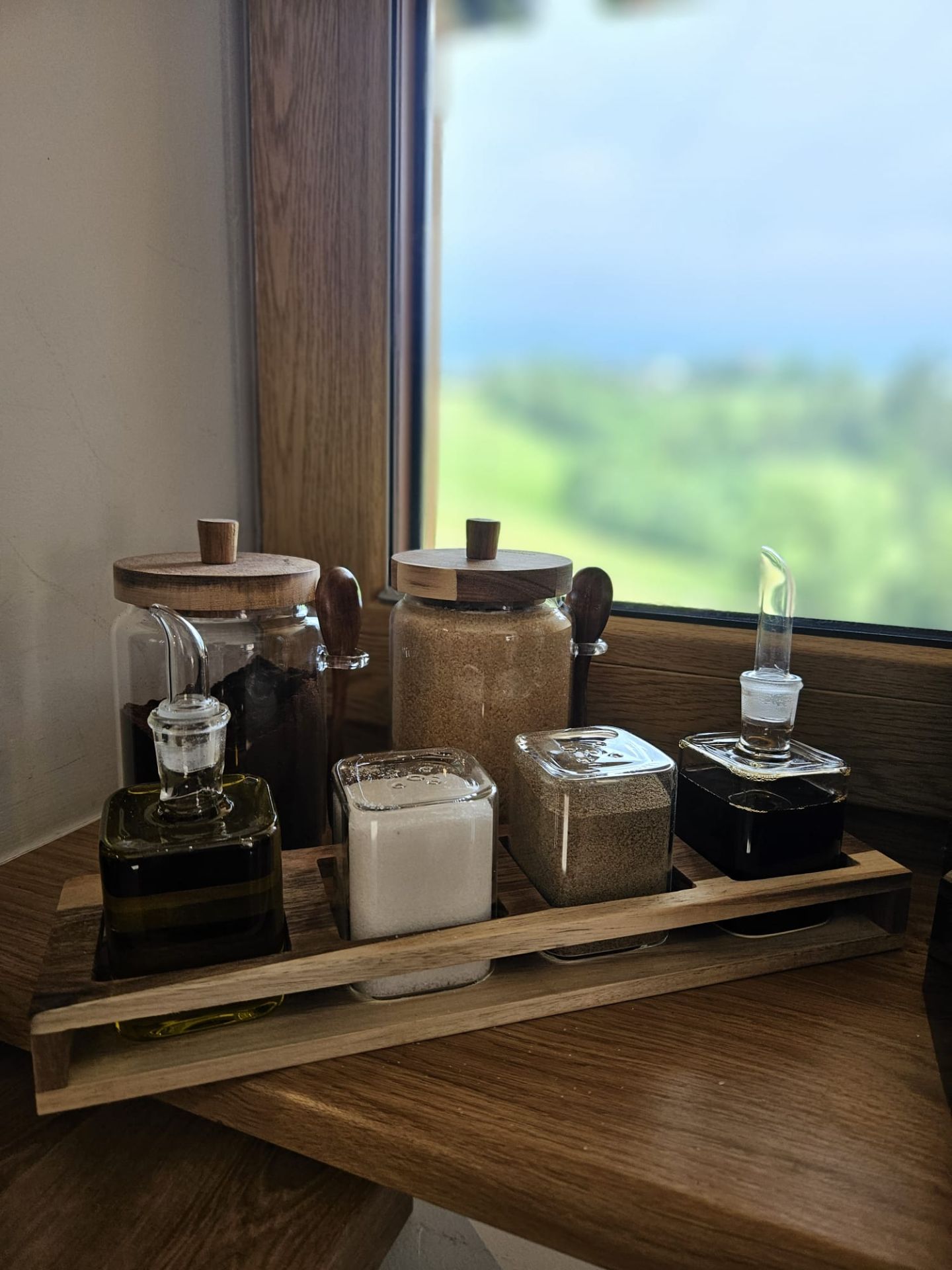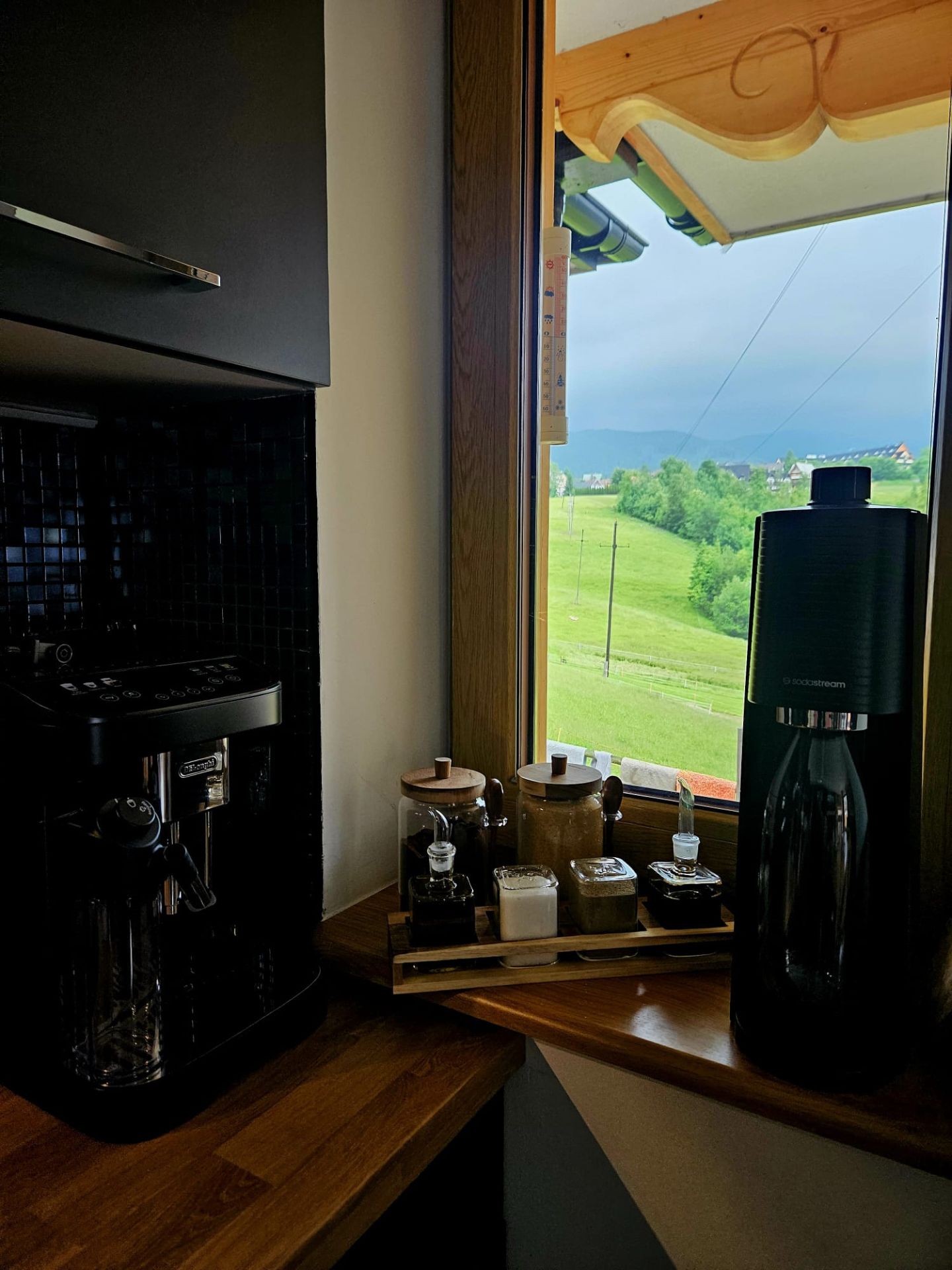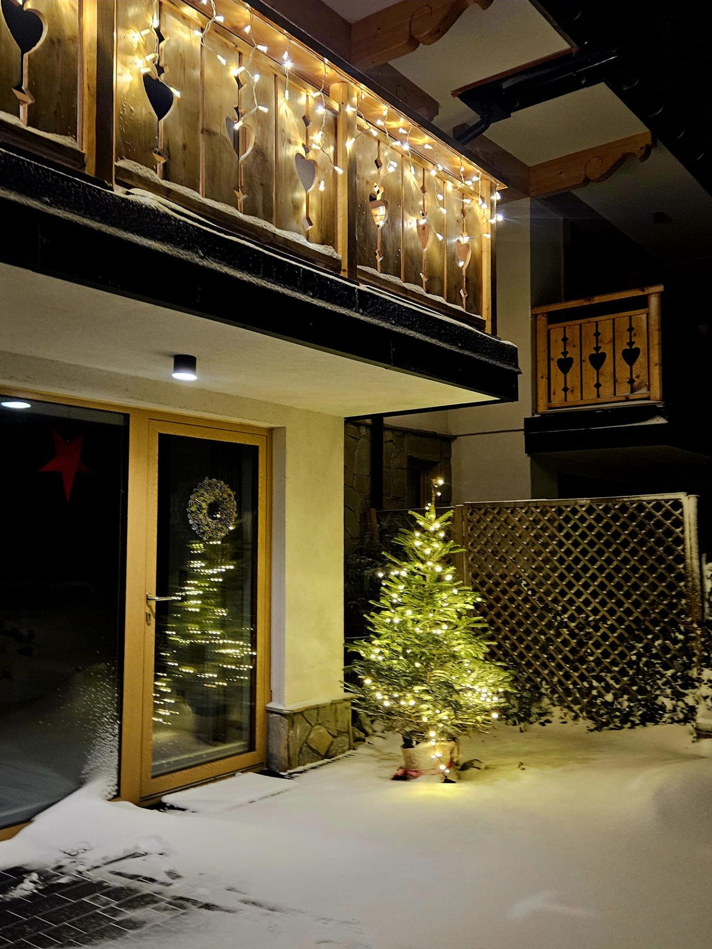 Na parterze znajduje się sypialnia z łóżkiem małżeńskim, oraz sofą rozkładaną, łazienką z prysznicem oraz sauną. Jest też wyjście na taras. Na piętrze jest w pełni wyposażona kuchnia z salonem z sofą rozkładaną, kominkiem elektrycznym oraz wyjściem na taras. Na II piętrze znajduje się sypialnia z łóżkiem małżeńskim oraz balkonem z pięknym widokiem na góry. Jest również łazienka z wanną. Na poddaszu znajdują się 3 materace typu futon przeznaczone do spania dla dzieci.